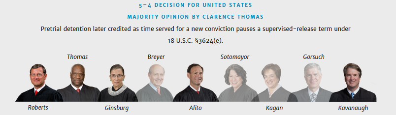 5:4 Decision for United States, in a pretty non-partisan decision. Breyer, Sotomayor, Kagan, and Gorsuch were the dissenters, saying that pretrial detention doesn’t remove the presumption of innocence. It’s there to make sure that dumb fuck shows up for trial, not punish him. As such, it shouldn’t pause shit. But, they’re in the minority, so they are in the loser’s lounge with Mont.