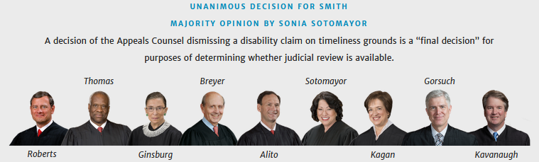 All nine SCOTUS justices sided with Smith. They agreed that the Appeals Council telling him to fuck off for being late, was a final decision on their part, and the now places his fight in the district court to address it through judicial review.