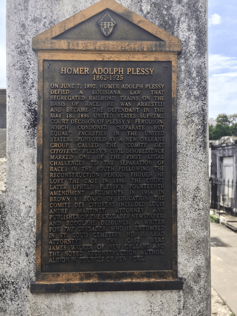 The gravesite of Homer Plessy. Try as I might, could not find a picture of him. Kept getting other random people involved in his case.